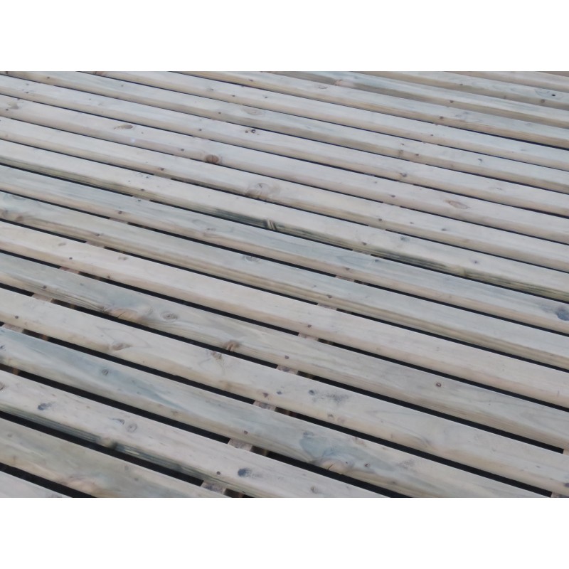 Deck impregnado 1x4" de 3,20 metros cepillado 3 caras y con cantos redondeados, ideal para terrazas, quinchos, bordes de piscina y carpinterías al exterior. Gracias a su impregnación al vacío con líquidos preservantes de madera prolonga su vida útil y la protege a la acción de hongos e insectos.